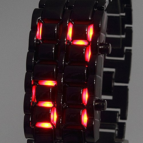 -. Title : HopCentury Lava LED Watch Unisex Digital Bracelet Wristwatch Metal Band for Men Kid Women - Red LED Light