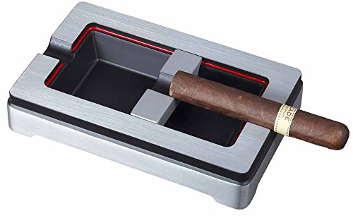 -. Feature : Two Static Cigar Rests for Smoking Convenience / Premium Quality Brushed Finish Stainless Steel Body with Black and Red Accents / Removable and Positionable Third Cigar Rest / Easily Cleaned in a Dish Washer / Sturdy, Solid and Reliable Rectangular Design