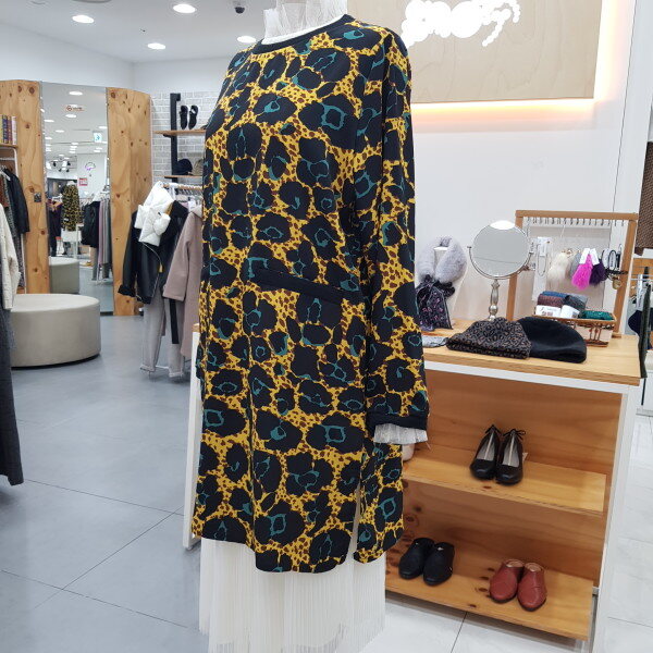 넥과 소매부분이 시보리로 활동성있게 착용하실수 있는 박스형으로 레깅스나 스키니바지 레이스원피스랑 같이 레이어드하시면 이쁜 핏의 원피스입니다