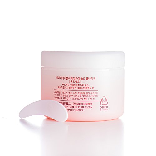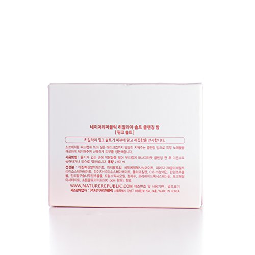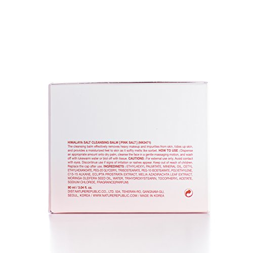 Nature Republic Himalaya Pink Salt Cleansing Balm is an oil cleanser in the form of a balm. This ensures no oily mess or leakage and better portion control. The semi-translucent balm transforms itself into soft cleansing oil on your finger tips, gentle on skin yet powerful enough to remove water-proof makeup. Himalayan salt is the most mineral rich of all salts! It contains numerous minerals that are important for our health - including calcium, copper, iodine, iron, magnesium, manganese, phosphorus, potassium, selenium, sodium and zinc. As a cleanser it has antibacterial and antiseptic properties making it a useful therapy for those with eczema, acne or psoriasis. The mineral content of a Himalayan salt can help maintain the protective barrier of the skin, while allowing it to hold in hydration. With antiseptic, antibacterial and anti-inflammatory properties, Himalayan salt helps soothe painful or irritated skin.Feature