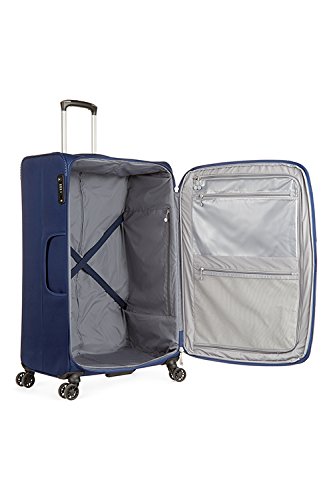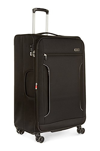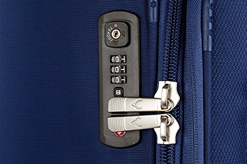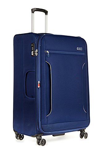 -. Feature : Super Light weight construction / 8 wheels for easy manouverability and durability / Two outer lockable zip pockets / Three interior pockets / Up to 2 inches expansion