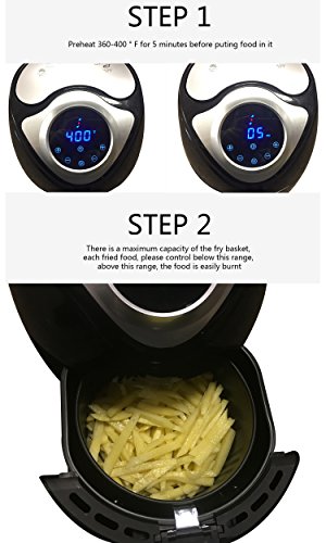 FEATURE:Digital Air Fryer With LED Timer and Temperature Touch Screen Control 7 Pre-programmed One-touch Cooking Settings and Non-Stick Coating. Use the rapid air circulation technology design, fry foods with some incredible tech that circulates hot air at a speed.
