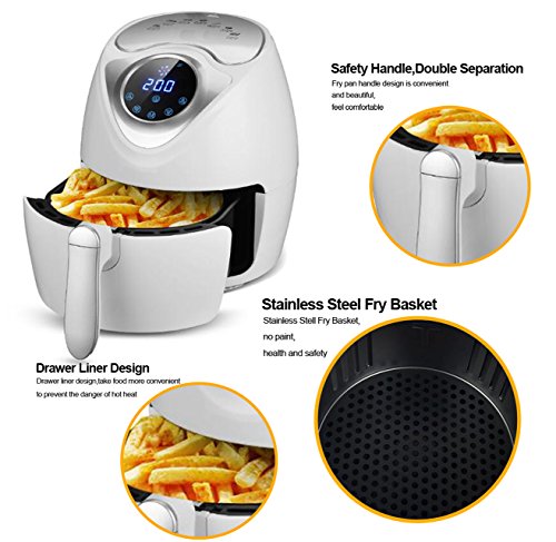 FEATURE:Digital Air Fryer With LED Timer and Temperature Touch Screen Control£¬7 Pre-programmed One-touch Cooking Settings and Non-Stick Coating. Use the rapid air circulation technology design, fry foods with some incredible tech that circulates hot air at a speed.
