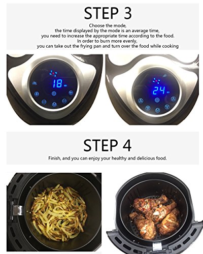 MORE HEALTHE: With on oil to create the mouthwatering dishes you crave, fried more healthy, delicious tongue,reduce unwanted fat.The air fryer has the ability to fry, roast, grill, bake, and broil with no oil.It will be a must-have in every kitchen and become the trends in the future.It can be used for the French fries, chicken legs, cake...
