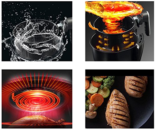 MORE HEALTHE: With on oil to create the mouthwatering dishes you crave, fried more healthy, delicious tongue,reduce unwanted fat.The air fryer has the ability to fry, roast, grill, bake, and broil with no oil.It will be a must-have in every kitchen and become the trends in the future.It can be used for the French fries, chicken legs, cake,seafood, meat...