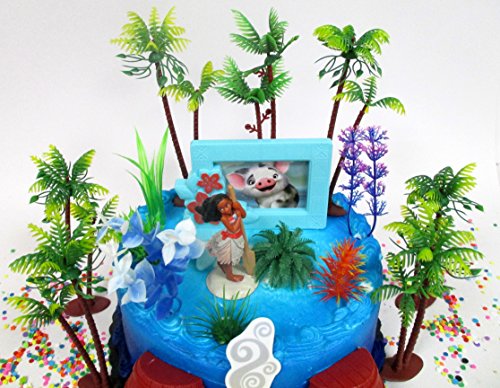Moana Deluxe Island Themed Birthday Cake Topper Set Featuring Moana and Decorative Themed Accessories