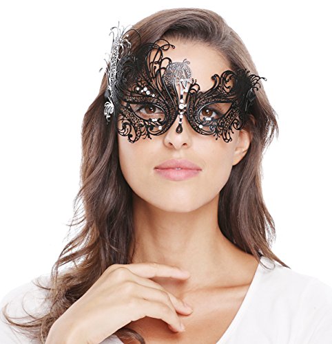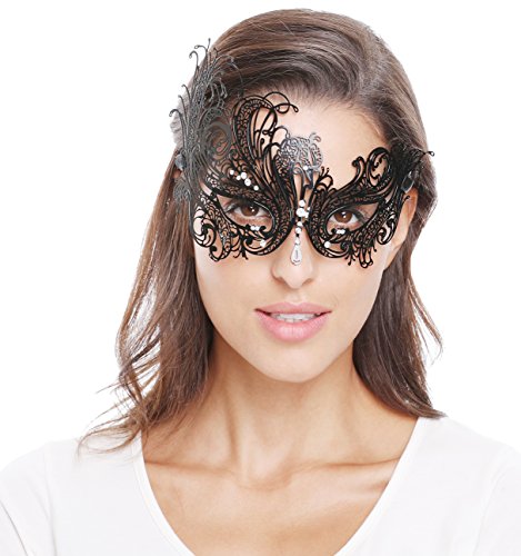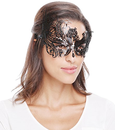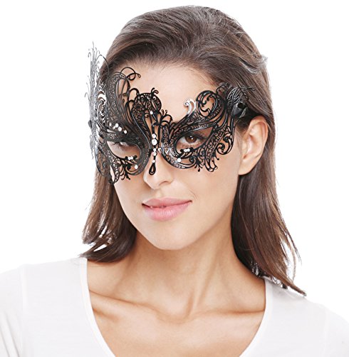 Bellady Mask Women's Metal Filigree Laser Cut Venetian Masquerade Mask ,Style2_Black