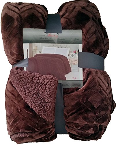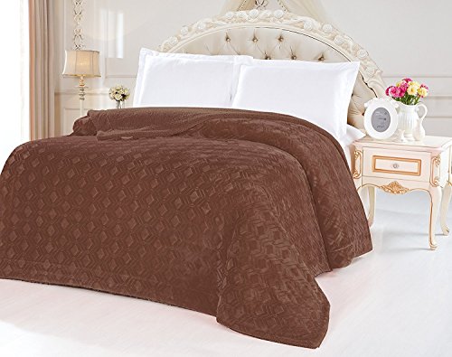 Fancy Collection Queen/king Size Embossed Blanket Sumptuously Soft Plush Solid Coffee Brown with Sherpa Revirsable Winter Blankets Bedspread Super Soft New