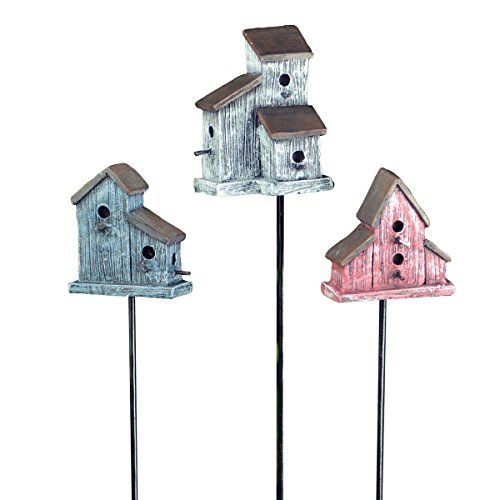 Georgetown Home & Garden Miniature Birdhouse Stake Garden Decor, Red/White/Blue, Set of 3