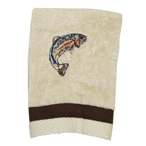Studio : Bacova Guild, LTD. (domestic) Publisher : Bacova Guild, LTD. (domestic) Binding : Misc. Product Description Born to fish fingertip towel is an embroidery on 100-percent cotton terry with a border trim. this novelty pattern is perfect for the fisherman in your house. coordinate your bathroom with matching shower curtain and bath accessories. unique patterns and shapes will brighten up your bathroom. 0