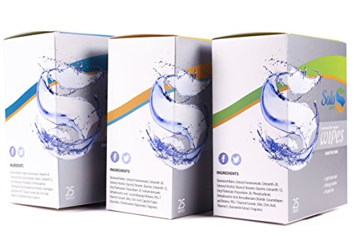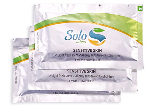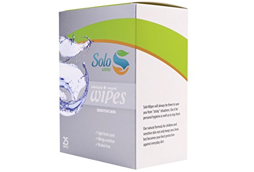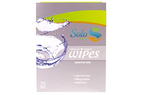 Solo Wet Wipes - Soothing, Refreshing, Personal, Wet Towelettes, Pocket Sized. (Pack of 25). Travel Package. Individually Packed. (SENSETIVE SKIN)