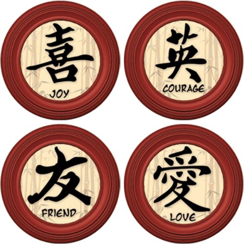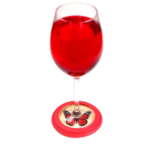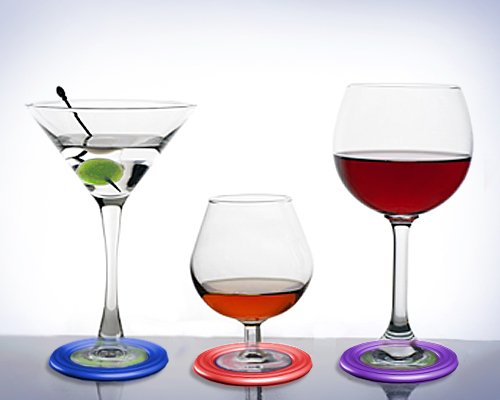 Joster Coasterica 2-in-1 Good Fortune Silicone Stemware Coaster and Glass Marker, Set of 4