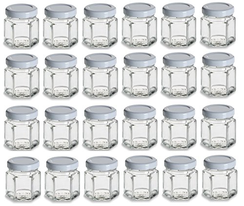 -. Title : Nakpunar 1.5 oz Mini Hexagon Glass Jars with White Plastisol Lined Lids - Set of 24 - Value Pack