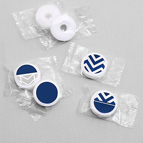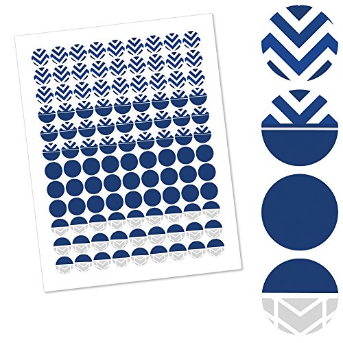 Chevron Navy - Baby, Bridal Shower or Birthday Party Round Candy Sticker Favors - Labels Fit Hershey’s Kisses (1 sheet of 108)