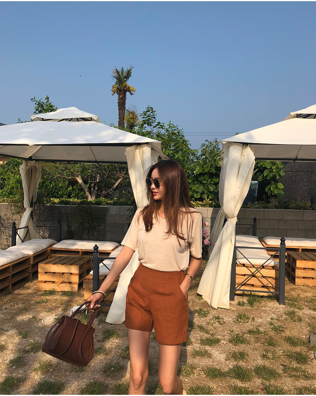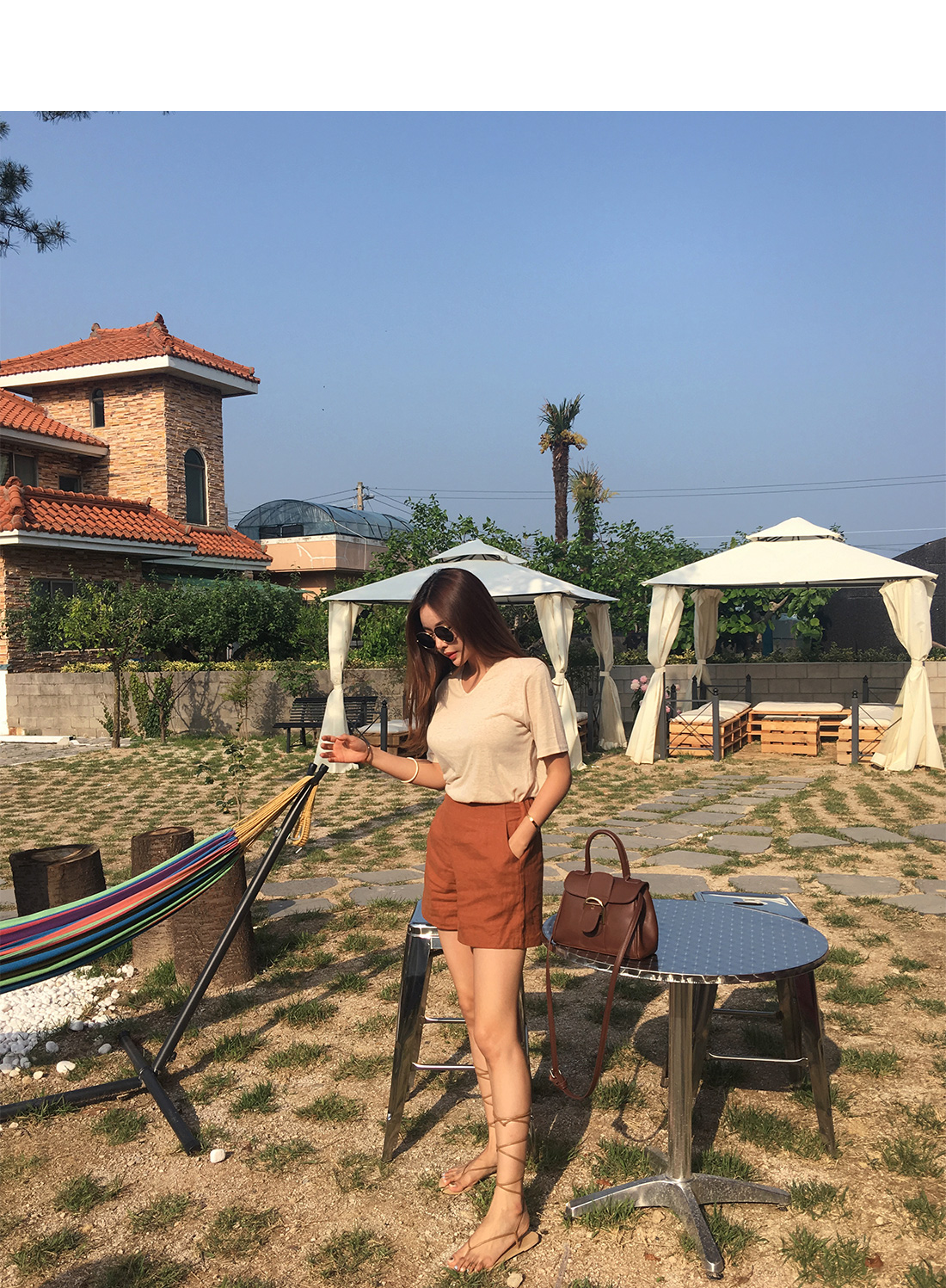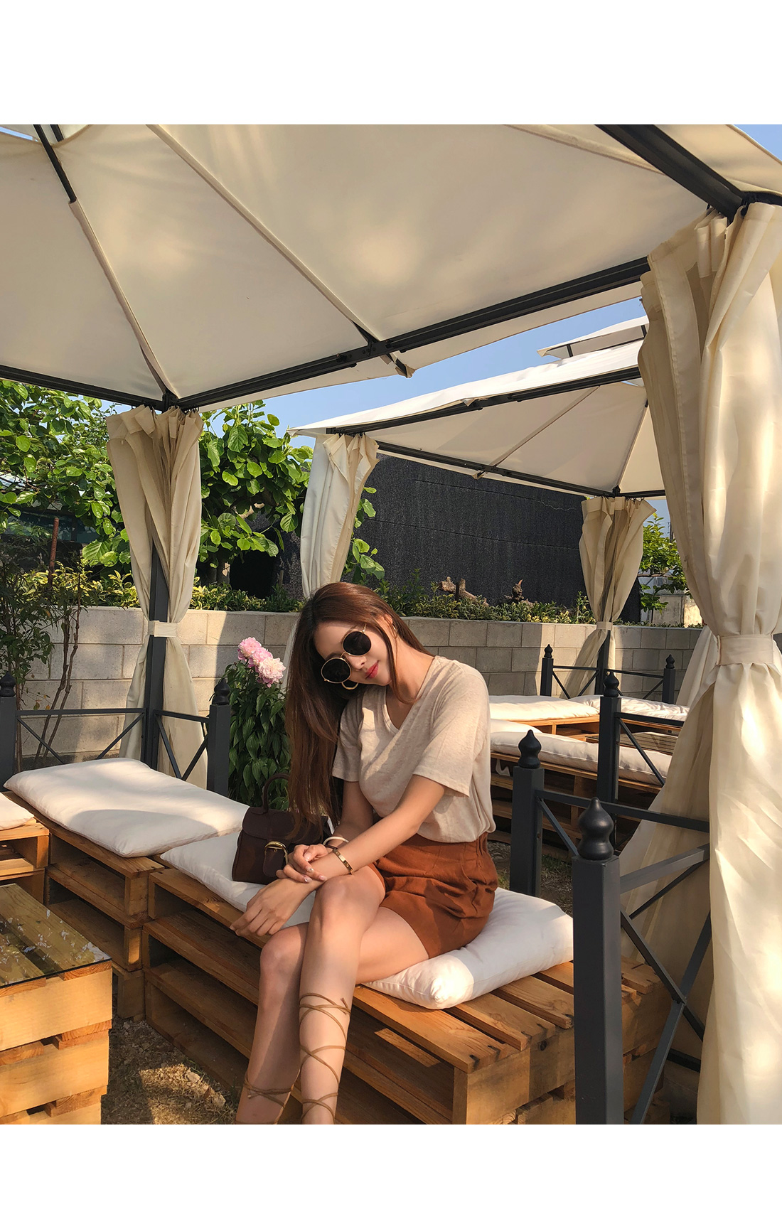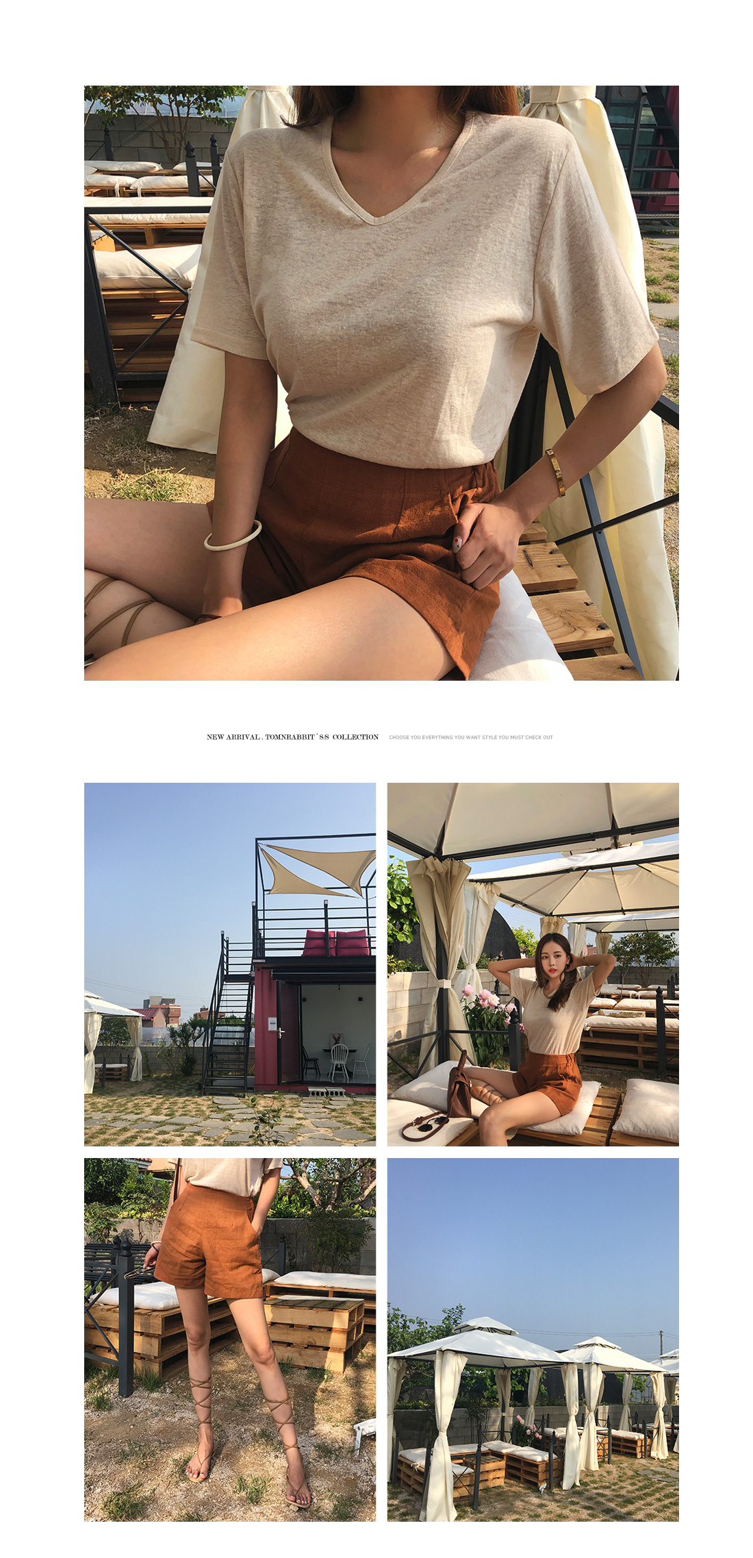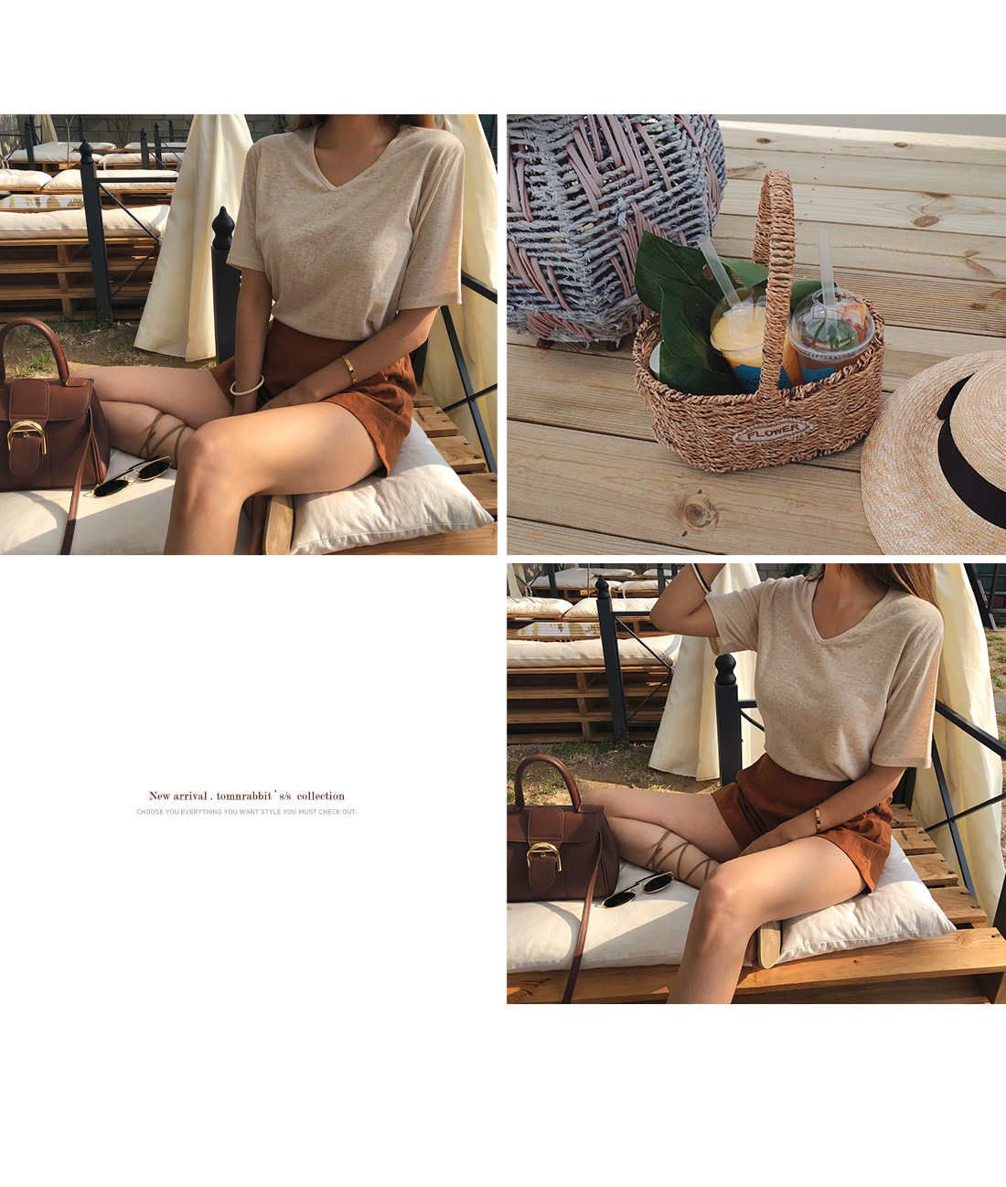 MD COMMENT 데일리하게 즐기기 좋은 브이넥 티셔츠 소개할게요.자연스럽게 내려오는 브이네크라인으로답답함을 덜어 주었구요.신축성이 뛰어난 소재감과 베이직한디자인으로 부담없이 편안하게 즐기기 좋은데요.군더더기없이 깔끔한 디자인으로 다양한 아이템과 두루두루 매치가 좋아 데일리하게 즐기기 좋아요.모델이 착용한 것처럼 단독으로는 함께하기 좋으며자켓이나 가디건 등과 함께 레이어드 하기좋아 두고 활용할 수 있어 실용적인 티셔츠 랍니다.얇은 소재감으로 비침이 있을수 있으니 참고해주세요!다양한 컬러 준비했으며프리사이즈로 누구나 함께하기 좋아 강추해드릴게요 .COLOR/SIZE 베이지,블랙,옐로우,아이보리,오렌지브라운,블루,다크브라운,핑크FREEMODEL FITTING 베이지/FREE