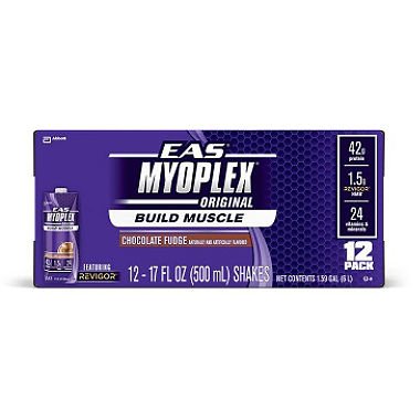 -. Binding : Health and Beauty -. Brand : EAS -. EAN : 3085349270304 -. Feature : Excellant source of Vitamin C and E / Source of 8 B-vitamins -. IsAdultProduct : 0 -. Label : EAS -. Manufacturer : EAS -. MPN : 59516 -. PackageQuantity : 1 -. PartNumber : 59516 -. ProductGroup : Health and Beauty -. ProductTypeName : HEALTH_PERSONAL_CARE -. Publisher : EAS -. Studio : EAS -. Title : EAS Myoplex Original Ready-to-Drink Shake, Chocolate Fudge (17 fl. oz, 12 pk.) (pack of 2) -. UPC : 769033082345