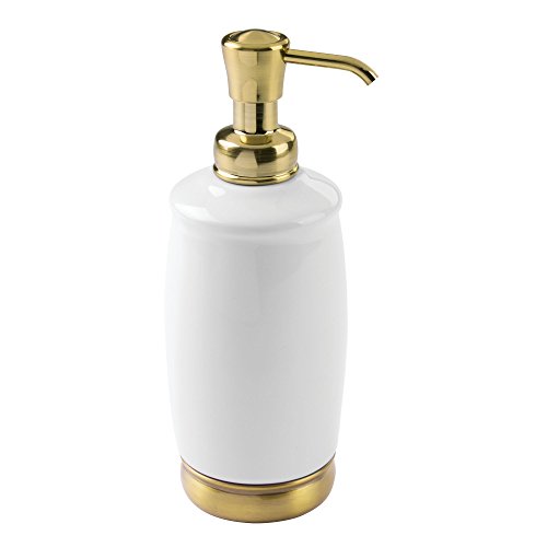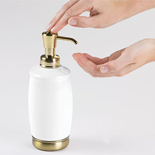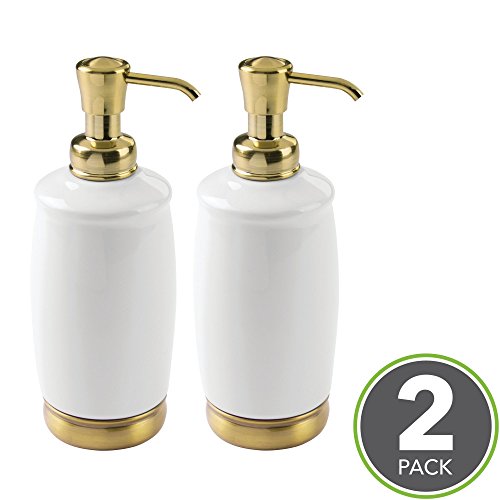 MetroDecor mDesign Liquid Hand Soap Ceramic Dispenser Pump Bottle for Kitchen, Bathroom | Also Can be Used for Hand Lotion & Essential Oils - Pack of 2, Tall, White/Soft Brass