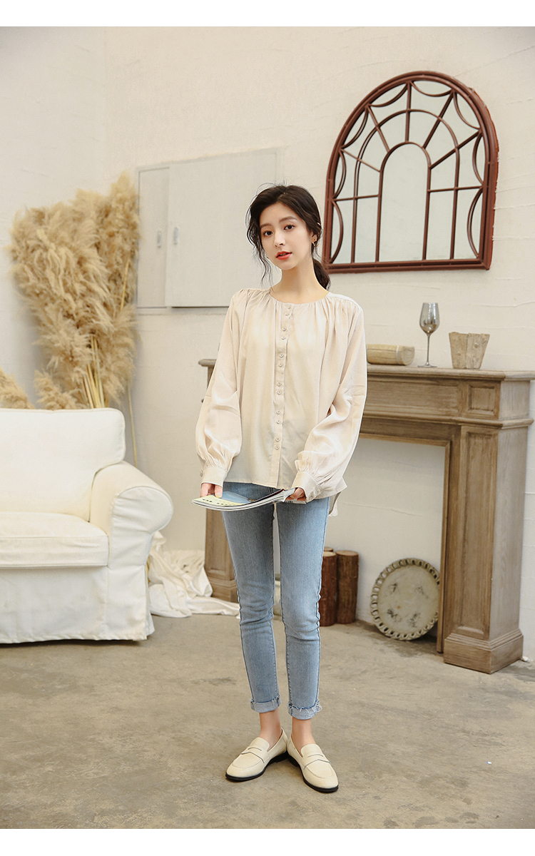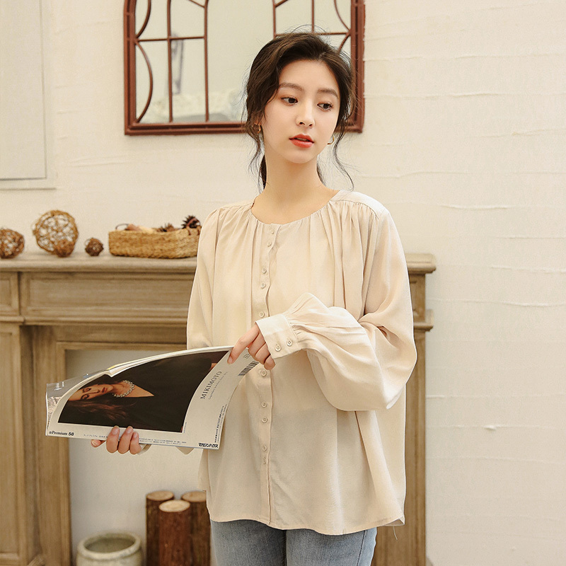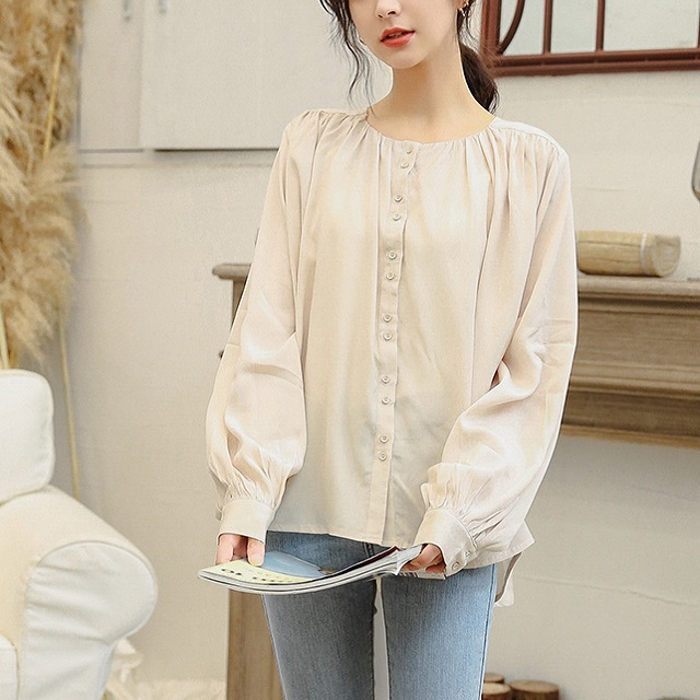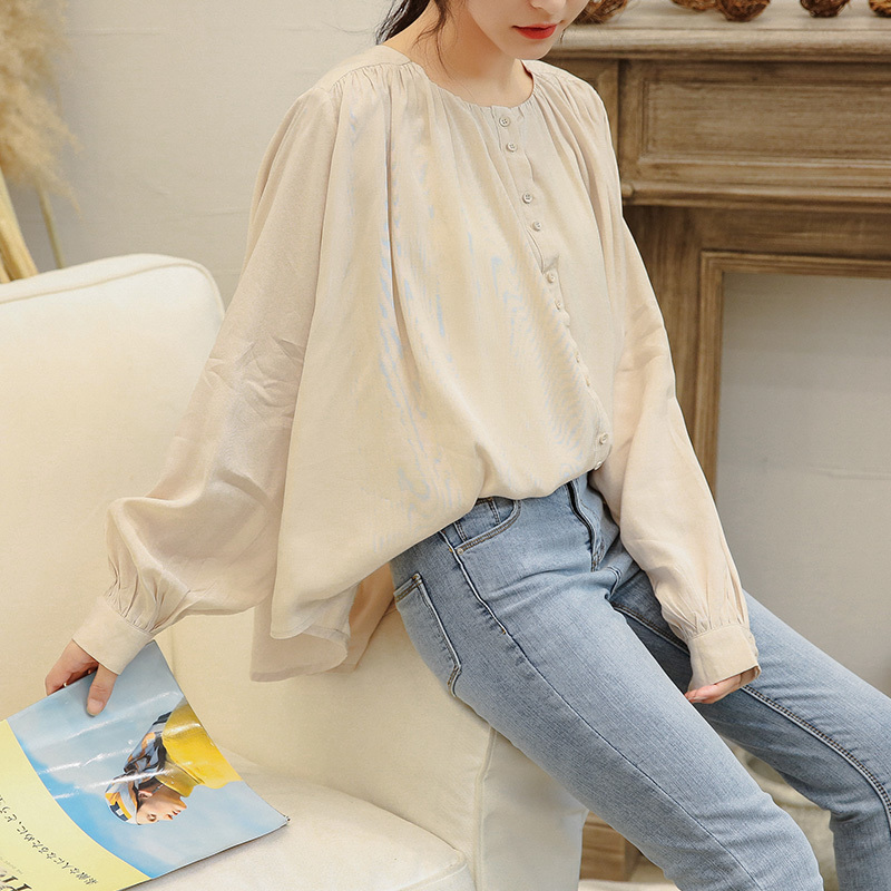 ヒップが隠れる丈感と身幅をワイドに取ったラフな着心地がポイントのブラウスです。
