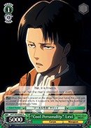 -. Binding : Toy -. Brand : Weiss Schwarz -. Edition : Attack on Titan Booster Pack -. Feature : A single individual card from the Weiss Schwarz trading and collectible card game (TCG/CCG). / This is of U rarity. / From the Attack on Titan Booster Pack set. -. IsAdultProduct : 0 -. ItemPartNumber : AOT/S35-E040 -. Label : Bushiroad Inc. -. Manufacturer : Bushiroad Inc. -. ProductGroup : Toy -. ProductTypeName : TOYS_AND_GAMES -. Publisher : Bushiroad Inc. -. Studio : Bushiroad Inc. -. Title : Weiss Schwarz - "Cool Personality" Levi - AOT/S35-E040 - U (AOT/S35-E040) - Attack on Titan Booster Pack
