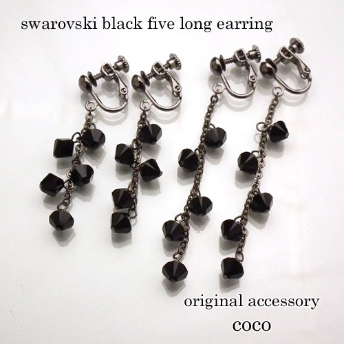 원본상품명: スワロフスキ? ブラック ファイブ ロング イヤリング ? レディ?ス ソロバン 型 チェ?ン ぶらさがり 手作り 日本製 イアリング swarovski