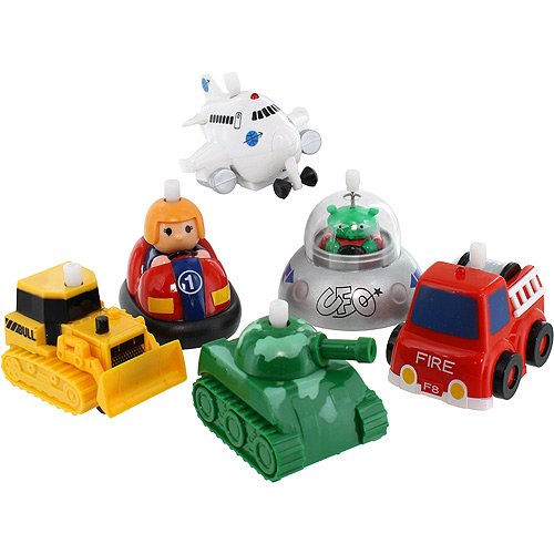Studio : DD Distributing Publisher : DD Distributing Binding : Toy Product Description A set of six exciting wind-up vehicles. Each wind-up is designed to detect the edge of the surface on which it drives; when faced with a sheer drop off the dining room table, the wind-up will swerve away, changing its direction to avoid falling! The set includes a tank, fire engine, airplane, bulldozer, bumper car, and UFO pod. The tank's barrel and the bulldozer's blade are both adjustable. The set makes for an excellent party favor or stocking stuffer, and can be given out as a fun prize at school by teachers, or for any contest. 0