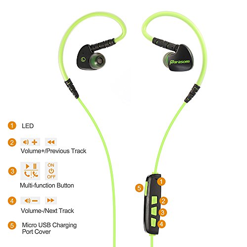 [1] EXTREMELY COMFORTABLE Ear-hooks desisign for Sports. Sweat-proof, lightweight bluetooth wireless stereo headphone with comfortable and secure ear-fitting design.