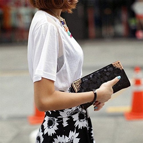 Type: Women Clutch Bag Gender: Women Style: Fashion Material: Faux Leather, Alloy Features: Zipper, Card Holder, Glitter Long Handbag, Hollow Size: 21cm x 11cm x 3cm/8.27" x 4.33" x 1.18" (Approx.) Great for wedding, party, banquet, shopping, etc. You can put cards, coins, cash and other small items in it. Exquisite women clutch bag, a perfect gift for yourself or your friends. Please make sure that you bought the item in Floralby, other stores are not authorized by us.