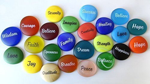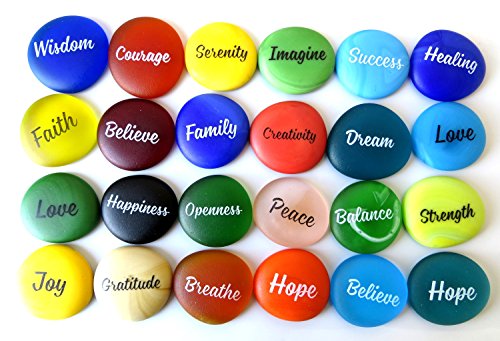 Sea Stones, Frosted Faux Sea Glass, Motivational, Inspiring and Encouraging Single Words, by Lifeforce Glass. Set of 24.