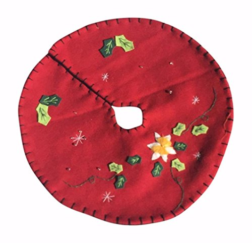 16" Christmas Tree Skirt Felt Applique Poinsettia Red Handmade Small Tabletop Size