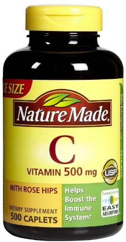 -. Binding : Health and Beauty -. Brand : Nature Made -. EAN : 0031604018795 -. Feature : 500 Vitamin C (500 milligram) Supplement with rose hips for immune system support / Boosts the immune system for a healthier lifestyle / Works in conjunction with vitamin E to promote antioxidant activities; contains 833% RDA of Vitamin C per tablet serving / Recommended as part of daily regimen for winter wellness and immunity / Founded in 1971, Northridge, California-based Pharmavite manufactures Nature Made vitamins and Nature's Resource herbal products and was instrumental in developing Good Manufacturing Practices (GMPs) for supplements -. IsAdultProduct : 0 -. Label : Nature Made -. Manufacturer : Nature Made -. Model : VITAMIN C -. MPN : na -. PackageQuantity : 1 -. PartNumber : na -. ProductGroup : Health and Beauty -. ProductTypeName : HEALTH_PERSONAL_CARE -. Publisher : Nature Made -. Studio : Nature Made -. Title : Nature Made Vitamin C 500 mg + Rose Hips Caps -. UPC : 031604018795