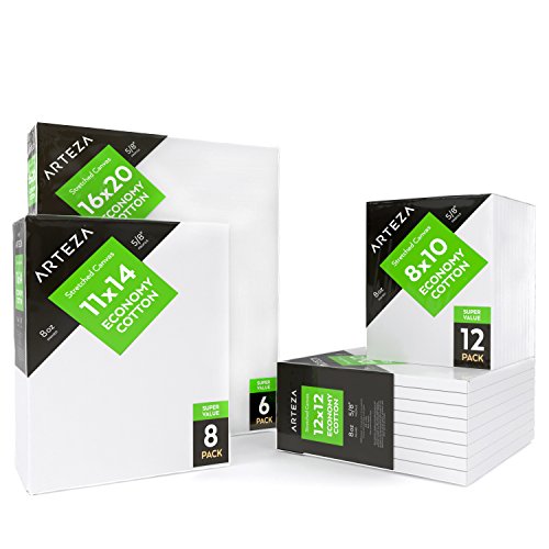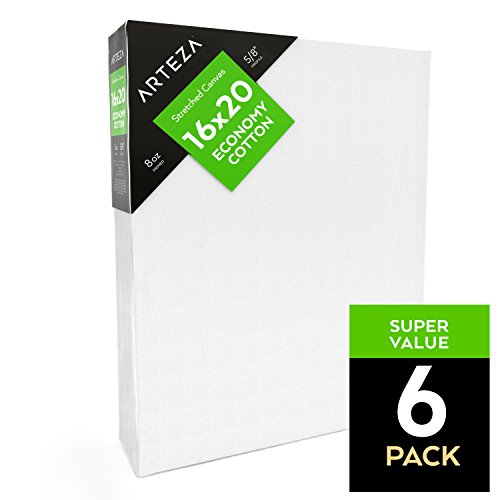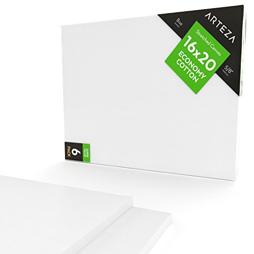 Arteza Blank Pre Stretched Canvas for Painting, 16x20", Pack of 6, Primed, 100% Cotton, For Acrylic Paint, Oil Paint, & Other Wet or Dry Art Media, For the Professional Artist, Hobby Painters, & Kids