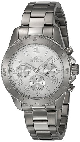 With elegance and style, the Wildflower collection carries with it the quality that Invicta is known for while creatively moving forward in assembling the perfect look. The delightful design complements the warm silver-tone dial, underscores the precise multi-function complication, accentuates the comfortable stainless steel bracelet and props up the strength of its spectacular 100 meter water resistance capability. Complete your collection with one today. This website is an authorized reseller of Invicta and each piece comes with the manufacturer warranty.Feature