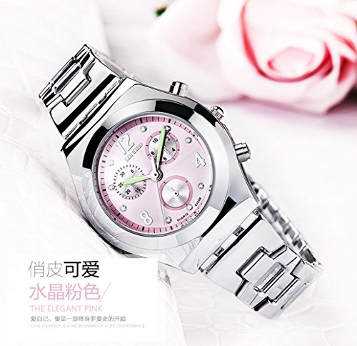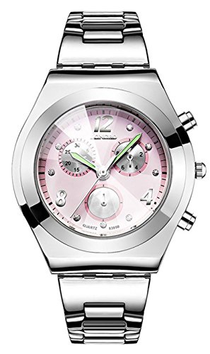 Fashion Casual Sport Women Waterproof Rhinestone Luminous Girls Dress Quartz Alloy Watch Silver Pink