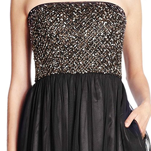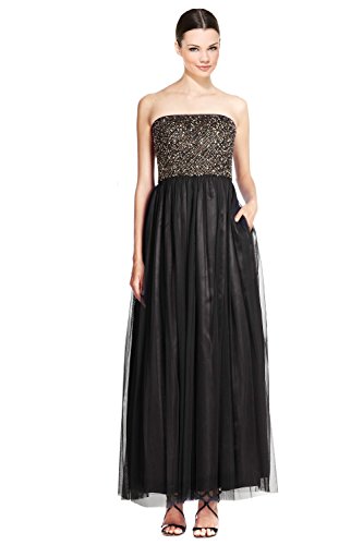A glimmering sequined bodice adds glamourous appeal to this floaty tulle evening dress. Features sequin detail at bodice, strapless style, tulle skirt, and seamed waist. Concealed back zipper.