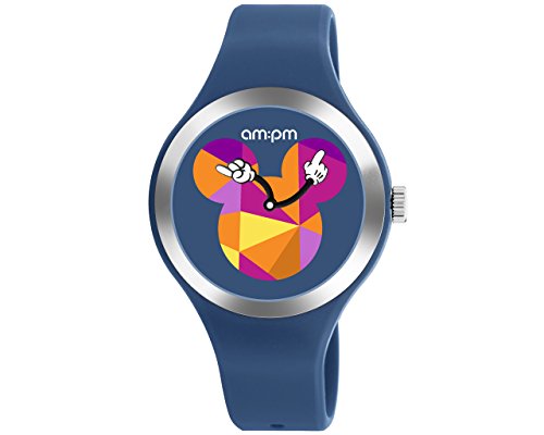 Disney Blue Unisex Watch by AM:PM Multicolor Mickey Mouse Logo Silicone Strap DP155-U536