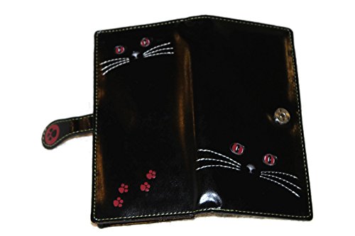 -. Feature : Shagwear / Curious Kitty Wallet / Red Eyed and Paws on Black Background / Red Paw Magnetic Clasp / Holds 11 Cards, Id, Cash, Check, and Card