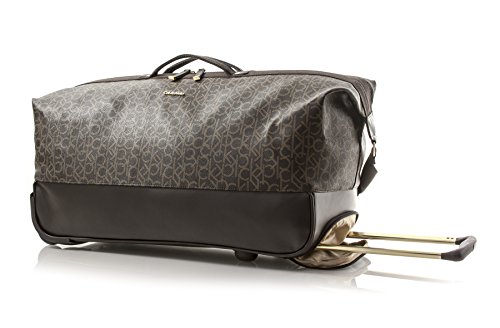 -. Binding : Apparel -. Brand : Calvin Klein -. Department : unisex-adult -. Feature : Signature Calvin Klein monogram print on PVC fabrication / Large main opening with dual zippers for easy access / Interior is fully lined interior slip pockets / In line skate wheels for easy rolling / 10.5x10.5x22 -. Label : GIII: Calvin Klein Luggage -. Manufacturer : GIII: Calvin Klein Luggage -. PackageQuantity : 1 -. ProductGroup : Apparel -. ProductTypeName : BAG -. Publisher : GIII: Calvin Klein Luggage -. Studio : GIII: Calvin Klein Luggage -. Title : Calvin Klein Mulberry Wheeled Duffle Rolling Duffel
