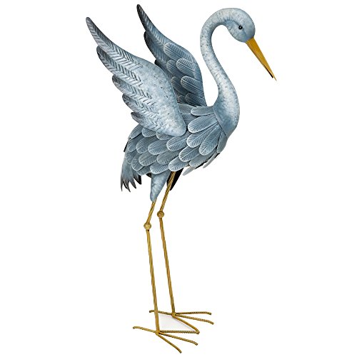 Bits and Pieces - Japanese Blue Heron Metal Garden Sculpture Set - Two Metal Cranes Perfect for Garden Décor - Metal Garden Art, Outdoor Lawn and Patio Décor, Backyard Sculpture, and Decoration.