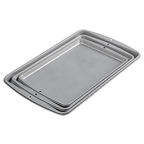 Baking sheet dimensions: 9-1/4-inches x 13-1/4-inches; 10-1/4-inches x 15-1/4-inches and 11-1/2-inches x 17-1/4-inches