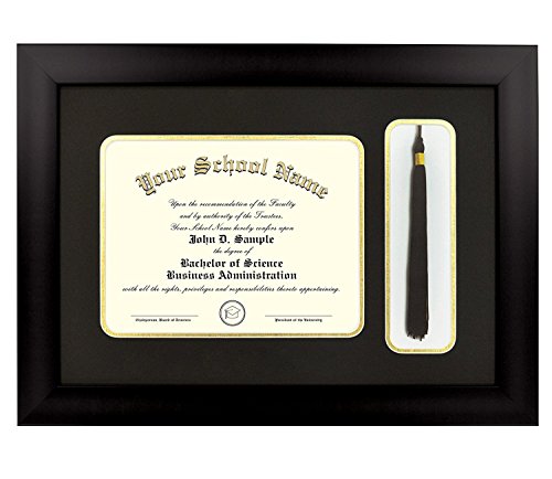 Matte Black Finish Infinity Diploma Frame with Tassel Box Black and Gold Mats by Celebration Frames (fits 11 x 14 document) Satin Black