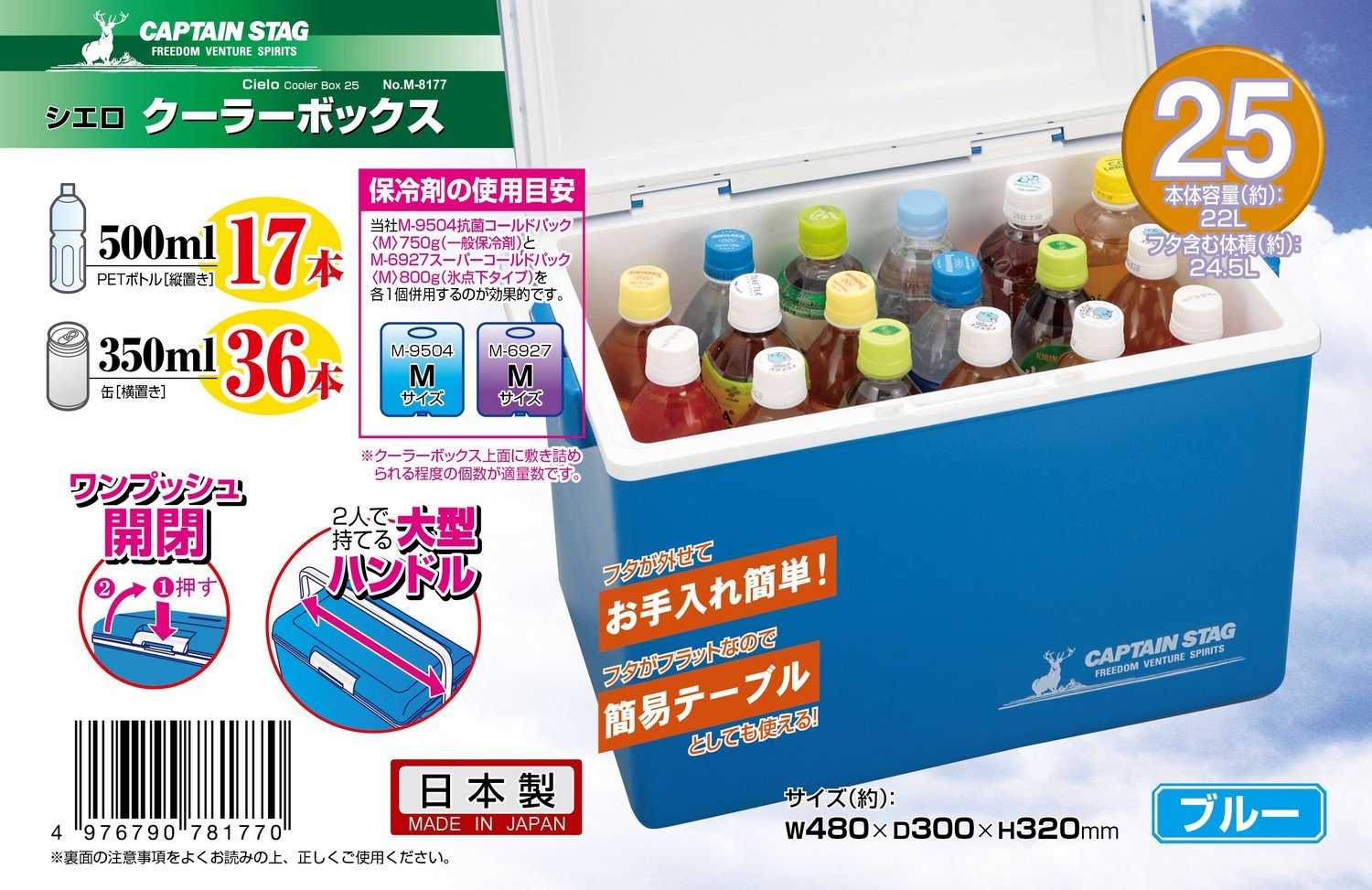 Captain Stag Cooler Box Cielo Cooler Box 25 M-8177 Capacity 22 L Blue