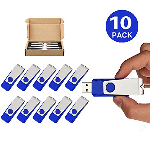 TOPSELL 10 Pack 16GB USB Flash Drives Flash Drive Flash Memory Stick Swivel USB 2.0 (16G, 10PCS, Blue)