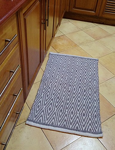 Studio : Chardin LLC Publisher : Chardin LLC Binding : Misc. Product Description This rug is made from 100% cotton. The gorgeous accent rug adds an elegant touch to any interior setting. It is handwoven which gives it a soft and smooth texture. Add design to your home with Chardin home’s truly reversible diamond rug! With this rug, you can use either side for two different looks. 0