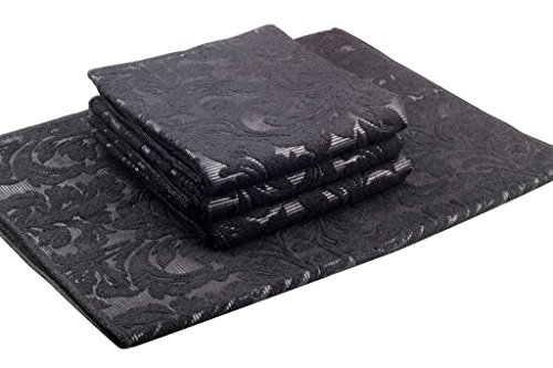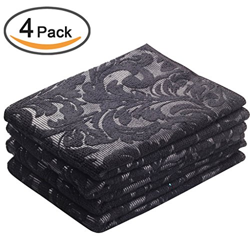Kleanner SUPER PREMIUM Microfiber Flower Embossed Texture Kitchen Dish Towel Tea Towel, Soft and Aborbent, Size 15 x 25 Inch, Set of 4 Packs ( Black)