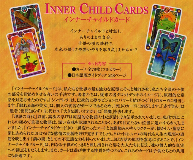| 以前は英語版しか発売されていなかったにも関わらず、日本国内に多数のユーザーを持つ人気商品。待望の日本語版となります。インナーチャイルドカード・日本語解説書付オラクルカードにベルベットバッグが付属になっています。レビュー投稿でヒマラヤ水晶さざれ1袋(約5g)も進呈※同レビュー企画は、1配送先に付き1袋となります。 | |