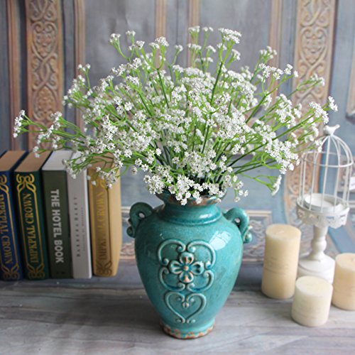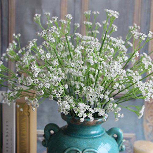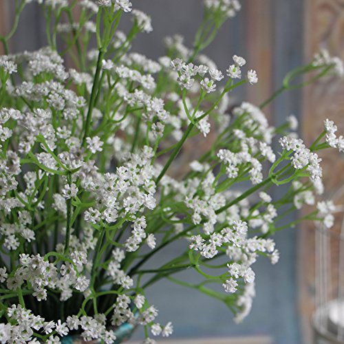 12Pcs Artificial Fake Gypsophila Soft Touch Silk Flowers Baby's Breath Bush in Cream Plastic Artificial Sky Star Flowers Wedding Party Decoration Real Touch Flowers DIY Home Garden