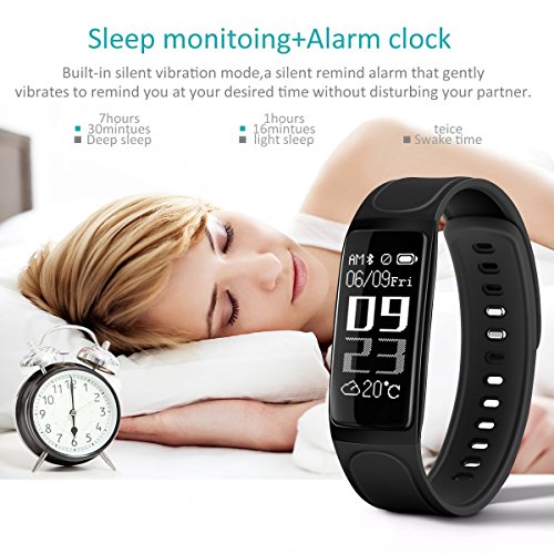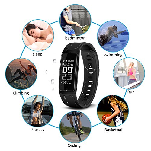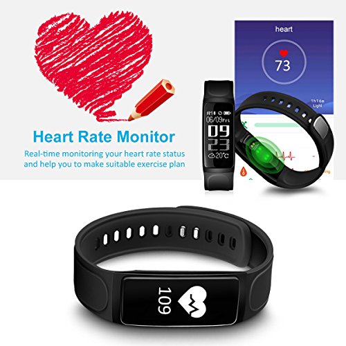 -. Feature : ★【Main Function】Heart rate monitor, Activity Tracker (Pedometer, Calories, Distance), Exercise Mode,Weather, Sleep Monitoring,Call Reject, Call Message Notification and SMS, Notification Messages APP (Facebook, WhatsApp, Skype, Messenger, Twitter, Wechat, LinkedIn. ..), Camera Remote Control, Sedentary Reminder, Alarm, synchronization date and time - You can clarify and analyze your sports and health data in the APP. Fitness life from now on! / ★【Heart Rate Monitor】Fitness Tracker can your heart rate. Testing Instructions: Turn on heart rate monitor, click to heart rate menu, the heart rate inductor's green light on the back of the band is on, smart wristband begin to track heart rate, It takes about 20-30 second to show your heart rate data. (Right way to wear: 1. make sure the wristband covers the skin, and no light leaks out. 2, Don't wear it too tight) / ★【Sleep Monitor with Night Mode】Connect this fitness wristband with the app via Bluetooth and data will be synced to the app. It can monitor your sleep quality at night including sound sleep hours, light sleep hours, awake hours, etc. After turning on "Night Mode" in the App, you will not be disturbed by its screen light. You can also set different alarm clocks and it will vibrate to wake you up or remind you to do exercise, take medicine, etc. / ★【Convenient USB Charge】Fitness wristband has a recharging cable; It can use a cable charging to recharge (come with fitness tracker). Long-lasting battery: just charge 1 hour and then you will get a 7-day standby Activity Wristband. Please charge to activate the device when you receive the smart bracelet. / ★【Main Function】Heart rate monitor, Activity Tracker (Pedometer, Calories, Distance), Exercise Mode,Weather, Sleep Monitoring,Call Reject, Call Message Notification and SMS, Notification Messages APP (SNS, Facebook, Line, Twitter, WeChat, Whatsapp etc.), Camera Remote Control, Sedentary Reminder, Alarm, synchronization date and time - You can clarify and analyze your sports and health data in the APP. Fitness life from now on!
