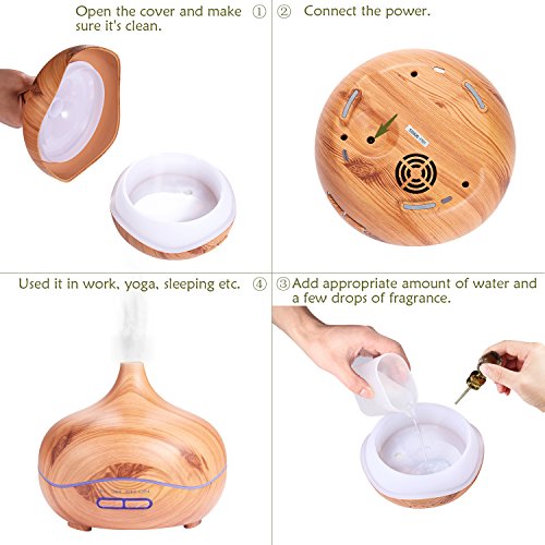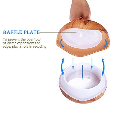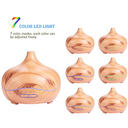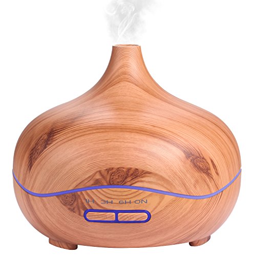 Ultrasonic Diffuser Humidifier Wood Grain,PEMOTech [2017 Newest] 300ml Essential Oil Diffuser with 7 Colorful Lights, Waterless Auto Off And 4 Timer Function for Office Home Study Yoga Spa