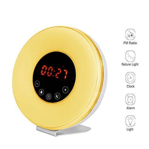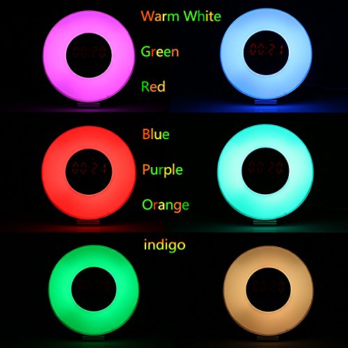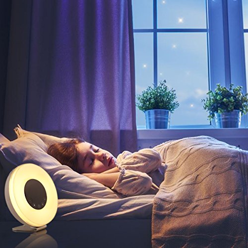 Wake Up Light,6 sounds Sunrise Simulation Alarm Clock 7 colors Bedside Night Light with Sunset&Snooze Function, Nature Sounds, FM Radio, Touch Control and USB Charger(2017 Newest)