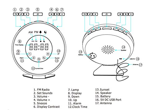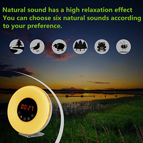 6 natural sounds optional to choose--Such as forest, birds, wave and so on which you can enjoy the beauty of the nature in the early morning. Another way of wake-up is 1 FM radio mode, which you can choose your favorite sound.